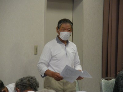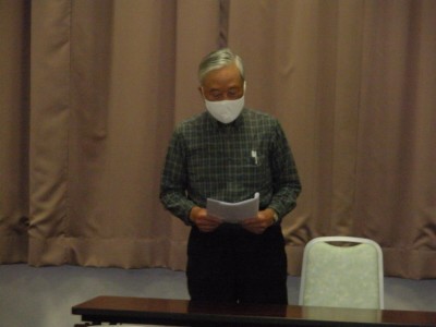 先ずは校歌清聴、小河深美副会長(7回)の挨拶、そして12月にお亡くなりになりました若宮昭三会長(中20回)、中島培夫様(11回)、中島憲登様(18回)への黙祷を全員で行ないました。総会には、県陵同窓会より望月雄内同窓会長(13回)が来賓として参加し、議事に先立ち挨拶を頂きました。