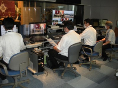 カメラマンが2人、操作スタッフが4人で撮影して頂きました。3時間の撮影に何時間も前から映像、音声チェック、東京会場とのやり取り等の確認、その大変さを間近に見る事ができました。テレビ松本の皆さん本当にお疲れ様でした。