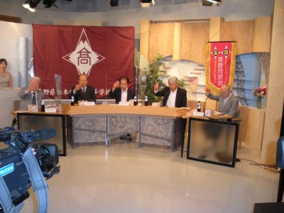 今回は杉村修一校長先生と同窓会を代表して望月雄内同窓会長、佐藤兼平同窓副会長、常盤欣司事務局長そして東京同窓会名誉顧間の巣山英毅様の5人と別室からの小澤秀俊さん(今年度母校愛のリレー実行委員長)が参加致しました。昼の11時半頃集まり、当日の流れなどの説明を聞き12時にスタジオ入りとなりました。皆さん緊張している中、常盤事務局長だけはそれを感じませんでした。リハーサルも無く音声チェックをしただけで挨拶をされる姿は流石だと思いました。その模様はYouTubeを是非ご覧ください。