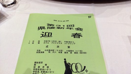さて、恒例の縣陵新年会も32回目を迎えました。また、恒例の「縣陵成人式」には、高76回の皆さんに、参加を呼びかけます。